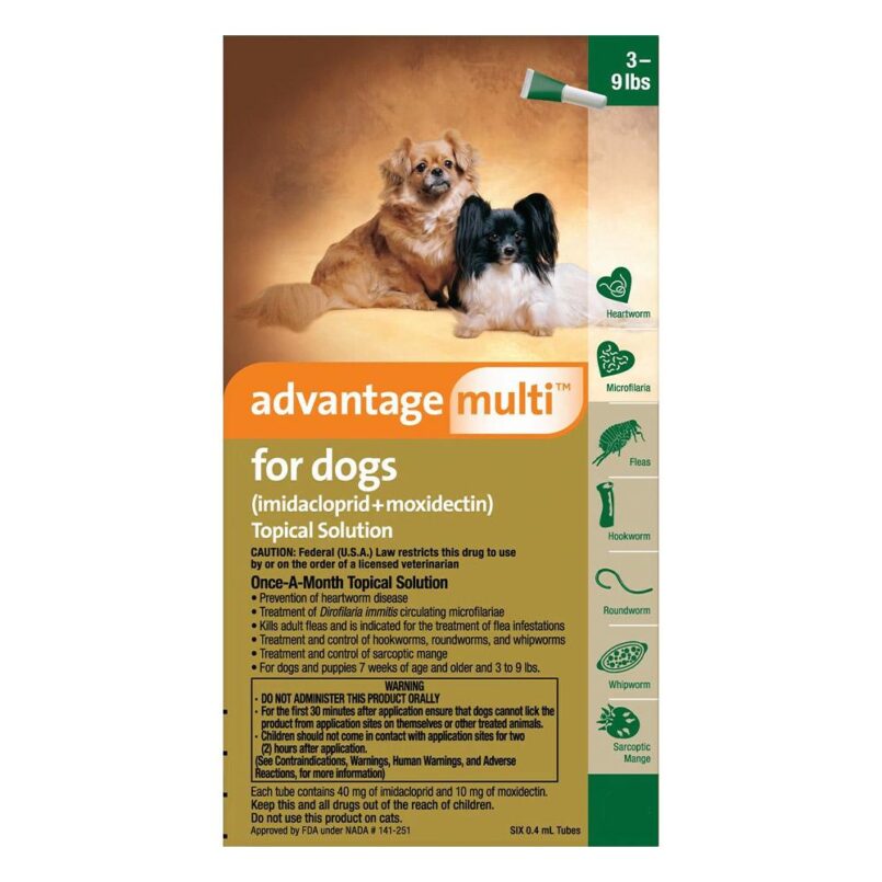 Buy branded Advantage Multi (Advocate) for Dogs for Heartwormers treatment with free shipping to all over USA, Advantage Multi for Dogs is used for the prevention of heartworm and the treatment and control of flea infestations, hookworms, roundworms and whipworms.