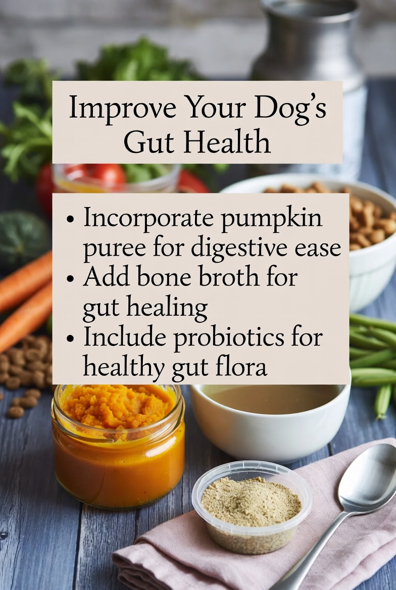 Improving gut health often means feeding the right foods, adding beneficial bacteria and fiber, and reducing irritants. A balanced gut can lead to firmer stools, less gas, better energy, and fewer allergy‑like symptoms over time.